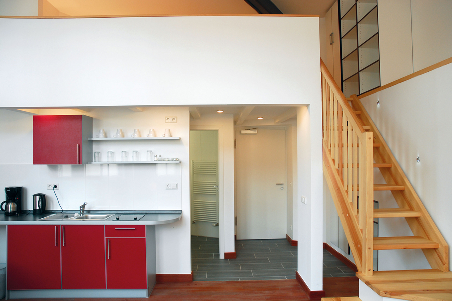 Los apartamentos son muy modernos y cómodos. Los 50 estudios están situados en la zona ajardinada del campus, directamente detrás de la escuela.